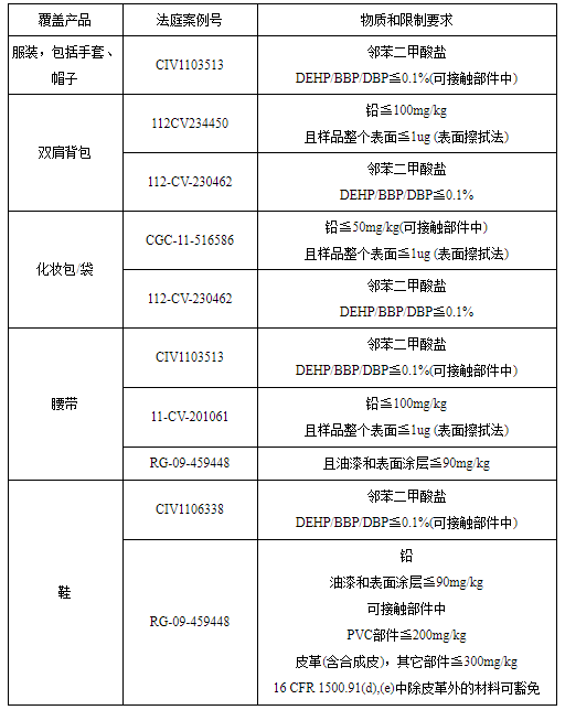 所有在加州銷售的產(chǎn)品,包括紡織品、玩具、雜貨、食品接觸產(chǎn)品、電子產(chǎn)品等,都會受到加州65提案的影響。產(chǎn)品中已知的有害化學(xué)物質(zhì)沒有固定的限值要求,而是根據(jù)物質(zhì)本身和產(chǎn)品類別所有不同。這些限值來自于消費者或環(huán)保團體因特定產(chǎn)品含有有毒化學(xué)物質(zhì)而向法庭提出訴訟,并在訴訟中達成的和解協(xié)議。